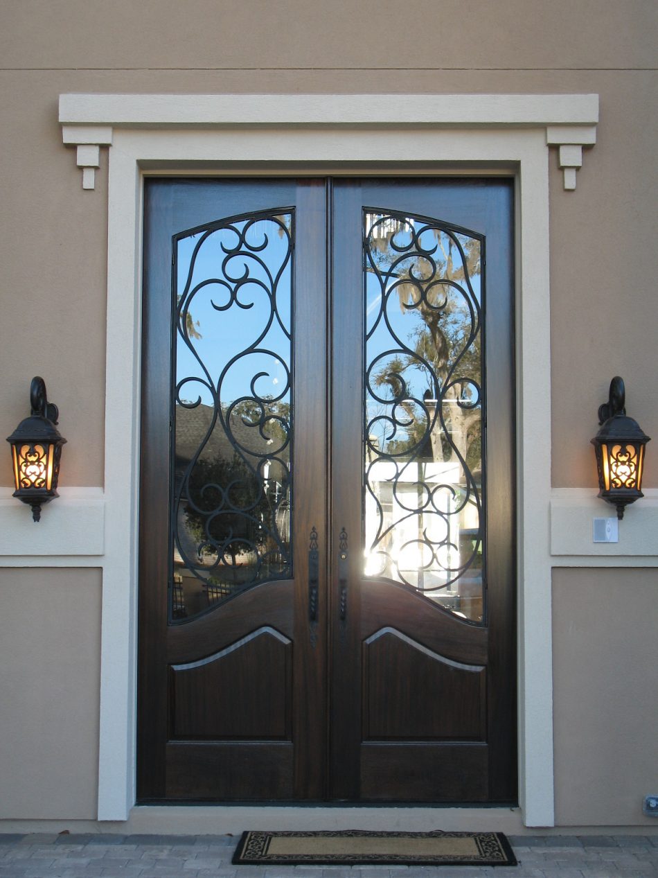 Красивые металлические двери со стеклом устанавливаются в Тарусе на входах в загородные дома, коттеджи, рестораны, магазины. Если на лестничной площадке предусмотрена тамбурная прочная дверь, тол остекленную модель можно купить и для квартиры. Для увеличения уровня противовзломной защиты зона остекления закрывается кованой декоративной решеткой, соединенной с железным листом внутри створок.